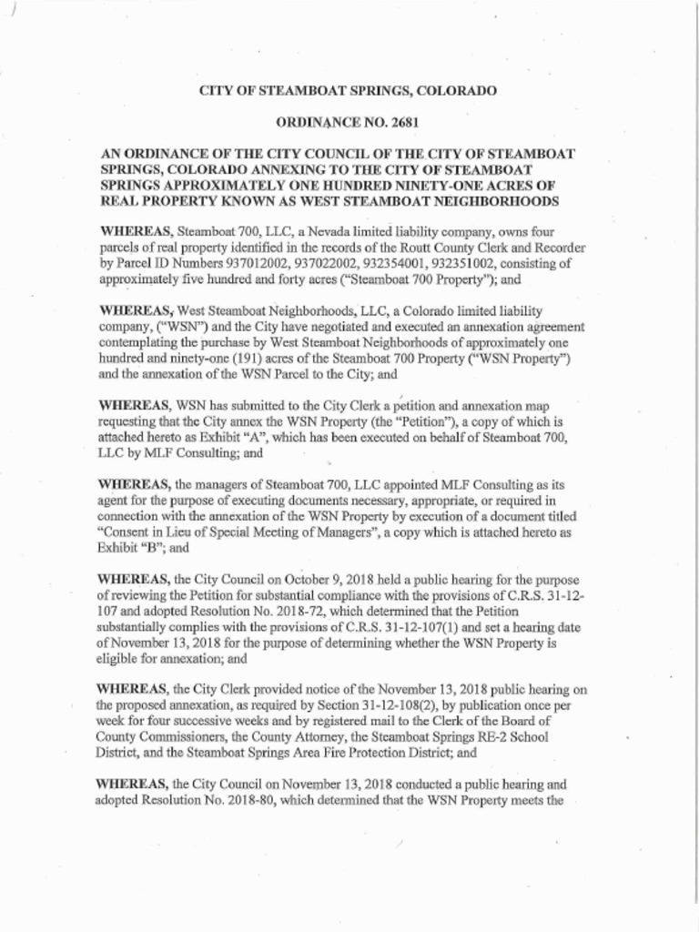 West Steamboat Neighborhoods Annexation Ordinance And Supporting Documents Pdf Covenant Law Affordable Housing